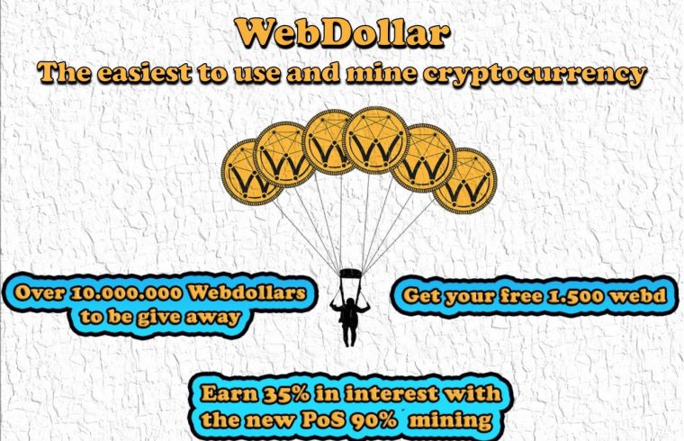 WebDollar Airdrop is worth over 10 million WEBD coins in total. Complete easy tasks to earn 1,500 WEBD coins. WEBD coins are already tradable! There is also a referral program available.